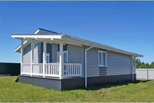 - В отличие от облицовки фасада деревом, металлический сайдинг «ЭкоБрус GL» прост в монтаже и не требует дополнительного послемонтажного ухода.