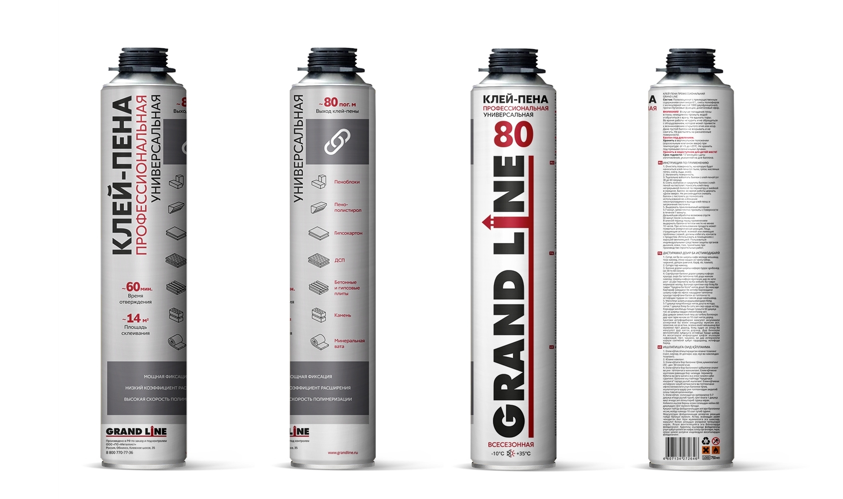 Клей-пена профессиональная Grand Line универсальная поставляется в металлических баллонах по 1000 мл (16 шт в упаковке).