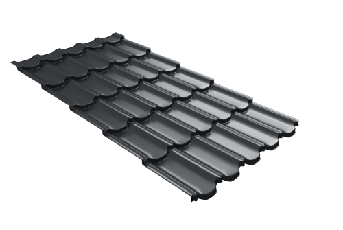 Металлочерепица квинта плюс Grand Line c 3D резом 0,5 Satin Matt RAL 7016 антрацитово-серый