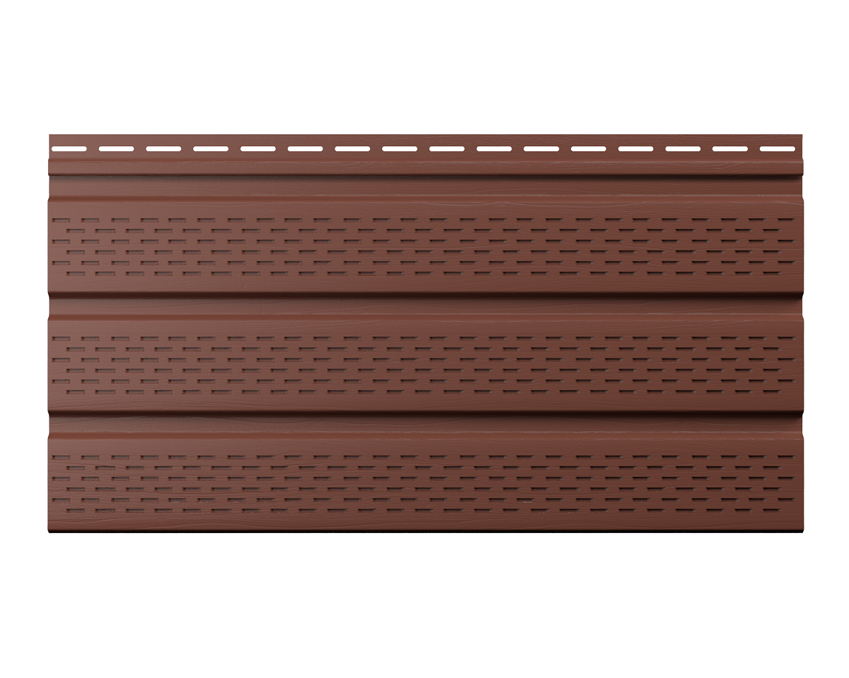 ТН, Софиты, полностью перфорированный, каштан, 3м используется для оформления потолка в нежилых помещениях, таких как террасы, гаражи, беседки и пр. Защищает от воздействия неблагоприятных погодных условий. Способствует наилучшей вентиляции, препятствует проникновению птиц и насекомых под кровлю. Нетоксичный материал. Сочетается почти со всеми видами стен и кровель.